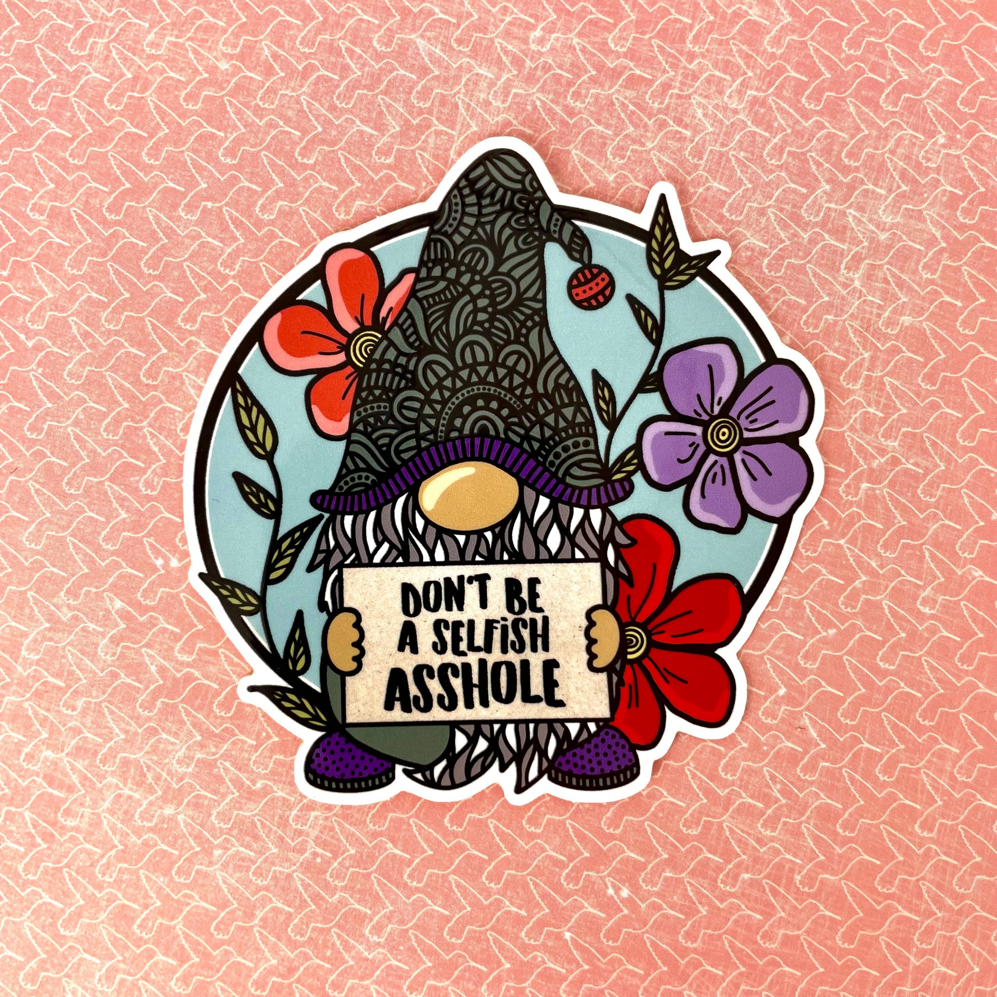 Hand-drawn gnome illustration made into a vinyl, waterproof die-cut sticker. Decorate your water bottle, laptop, bulletin board, planner, and more! Durable enough for cars and snowboards!