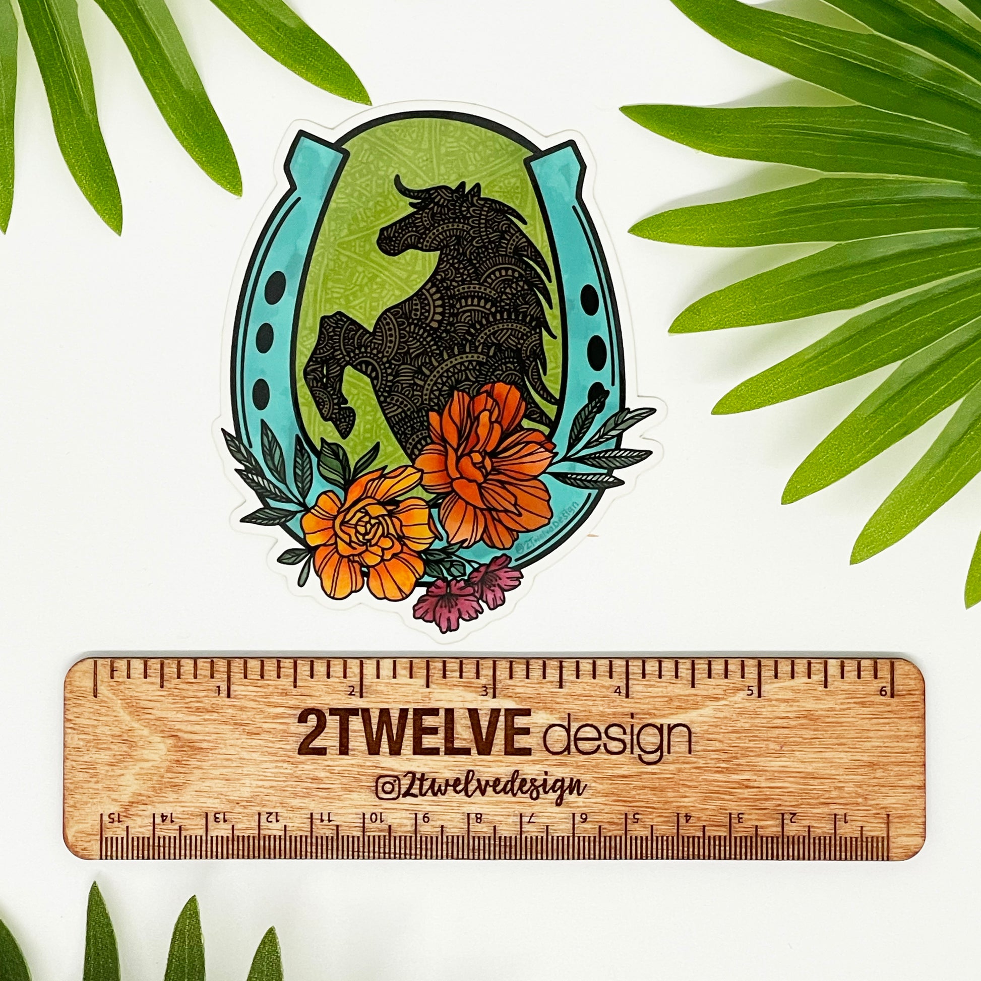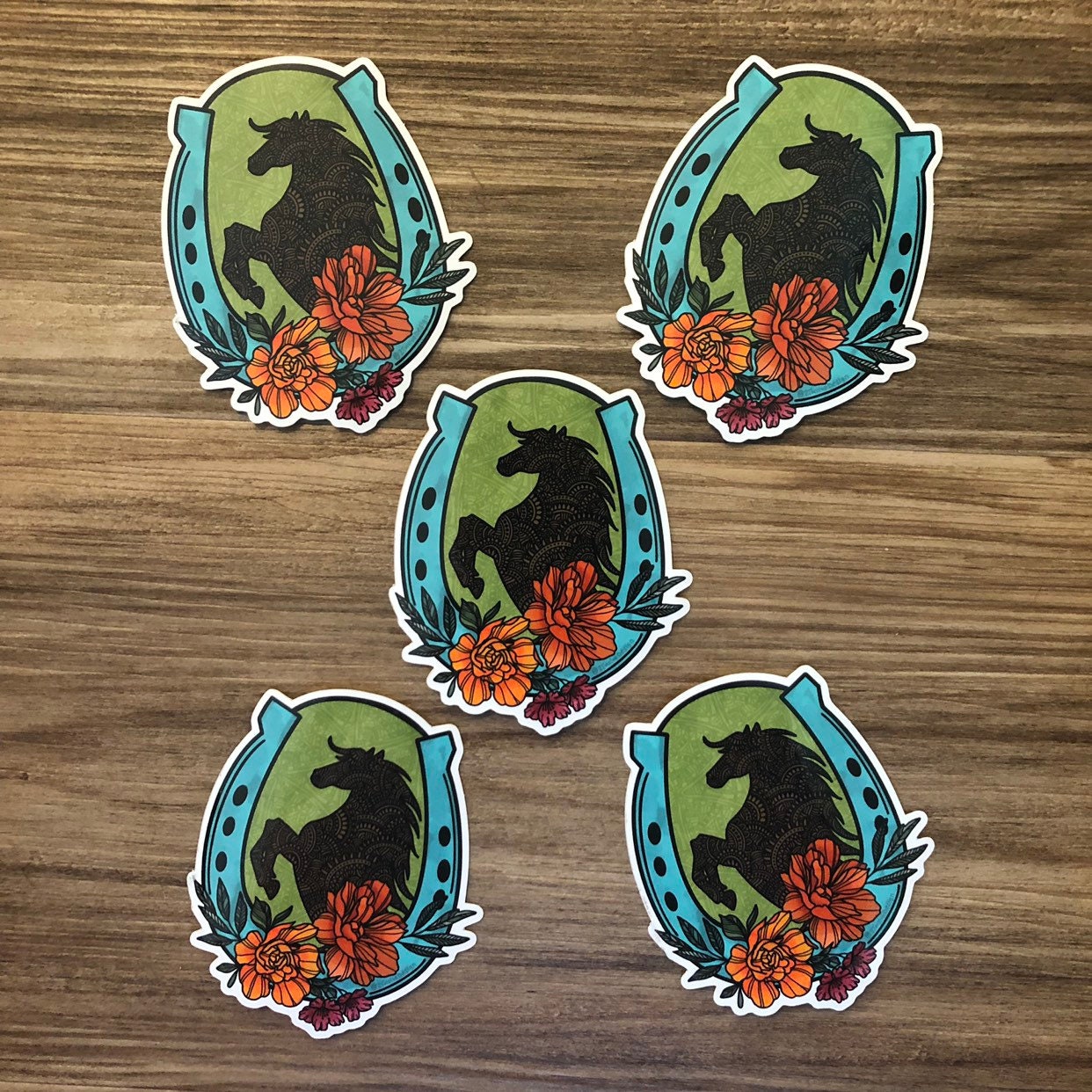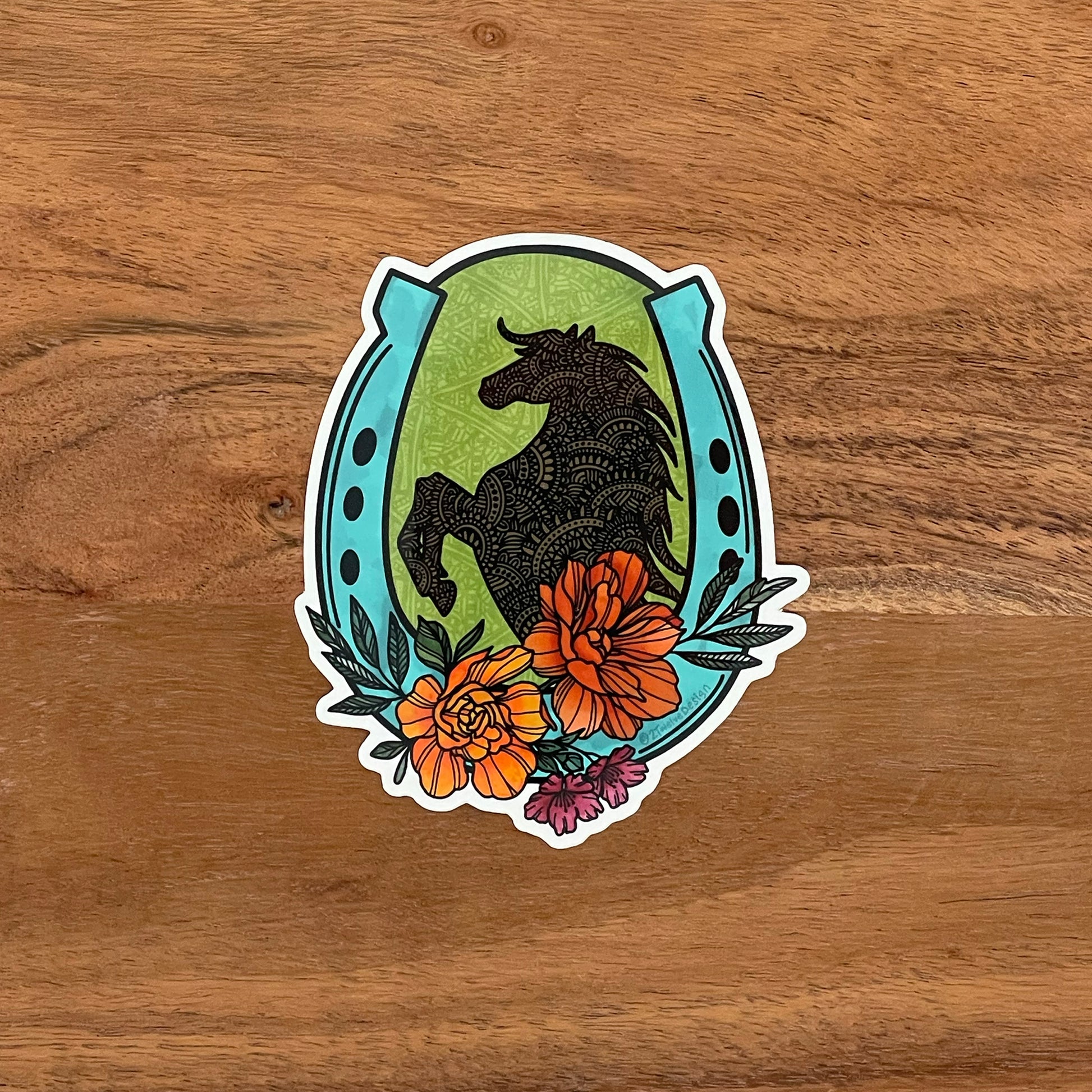 Hand-drawn floral and horse illustration made into a vinyl, waterproof die-cut sticker. Decorate your water bottle, laptop, bulletin board, planner, and more!