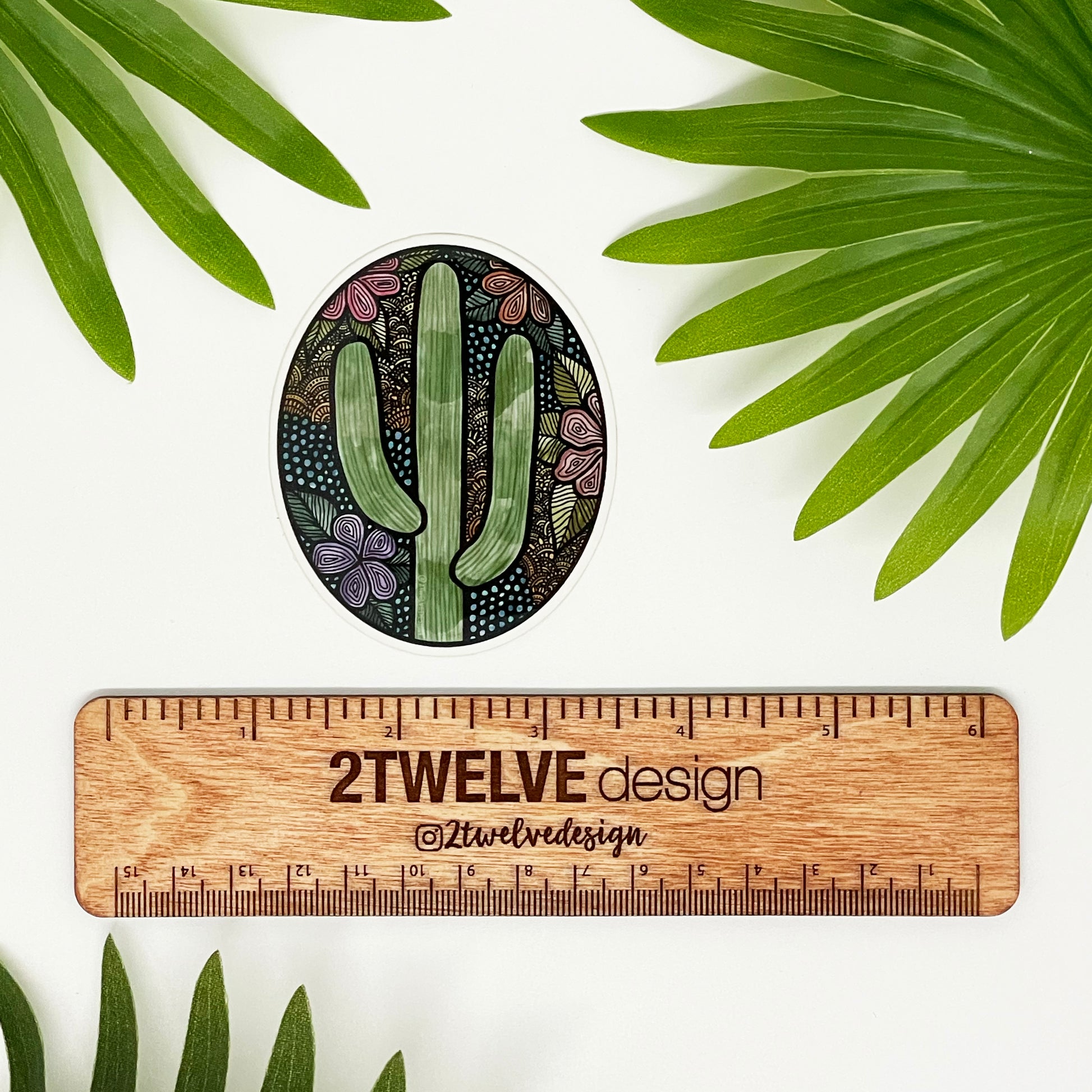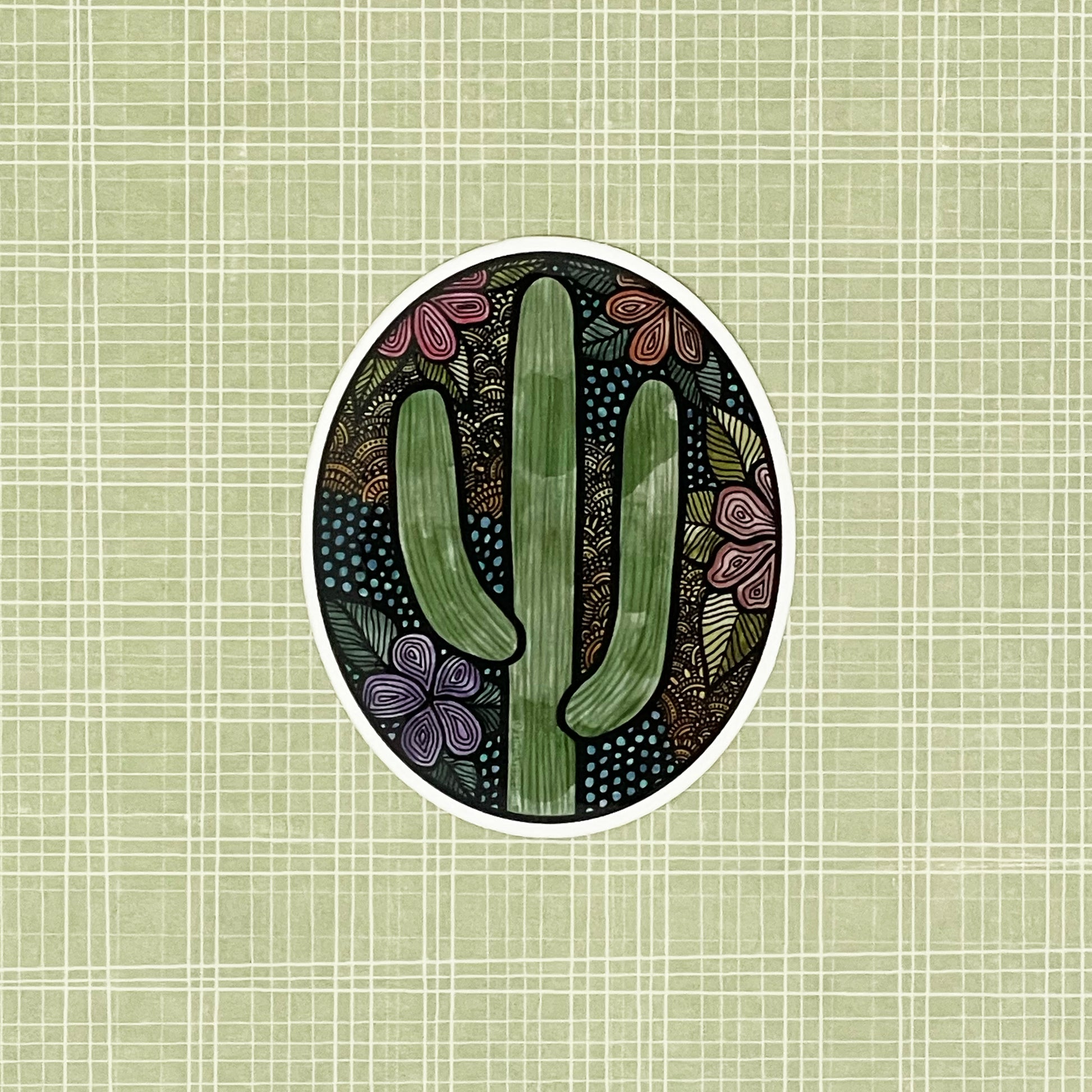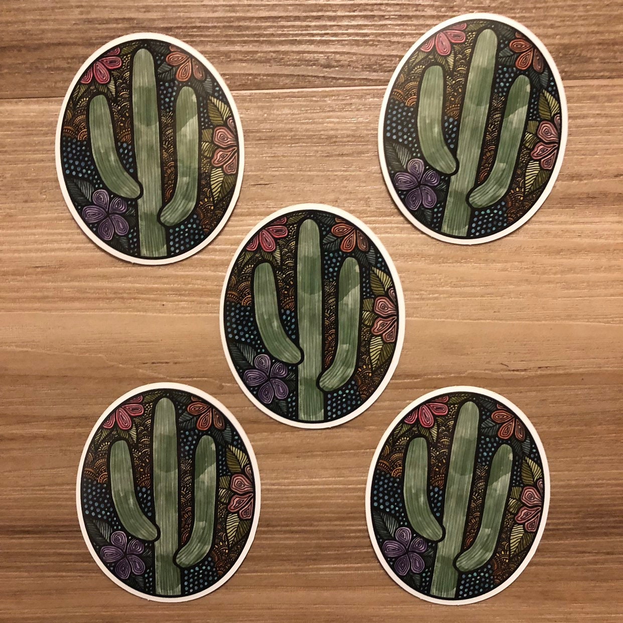 Hand-drawn cactus and floral illustration made into a vinyl, waterproof die-cut sticker. Decorate your water bottle, laptop, bulletin board, planner, and more!