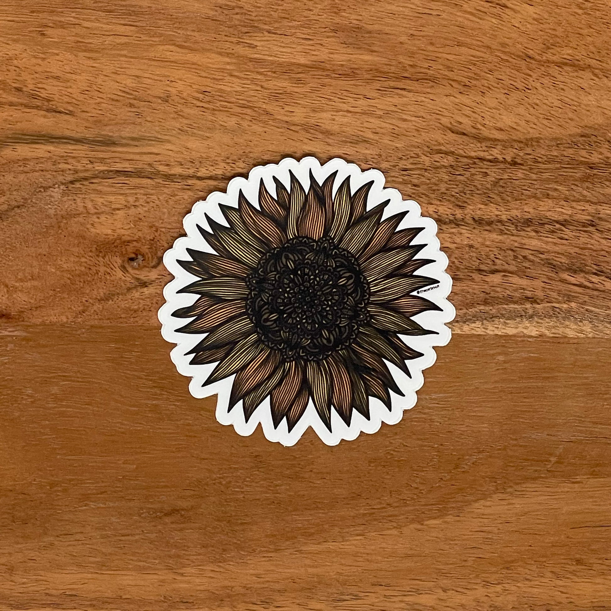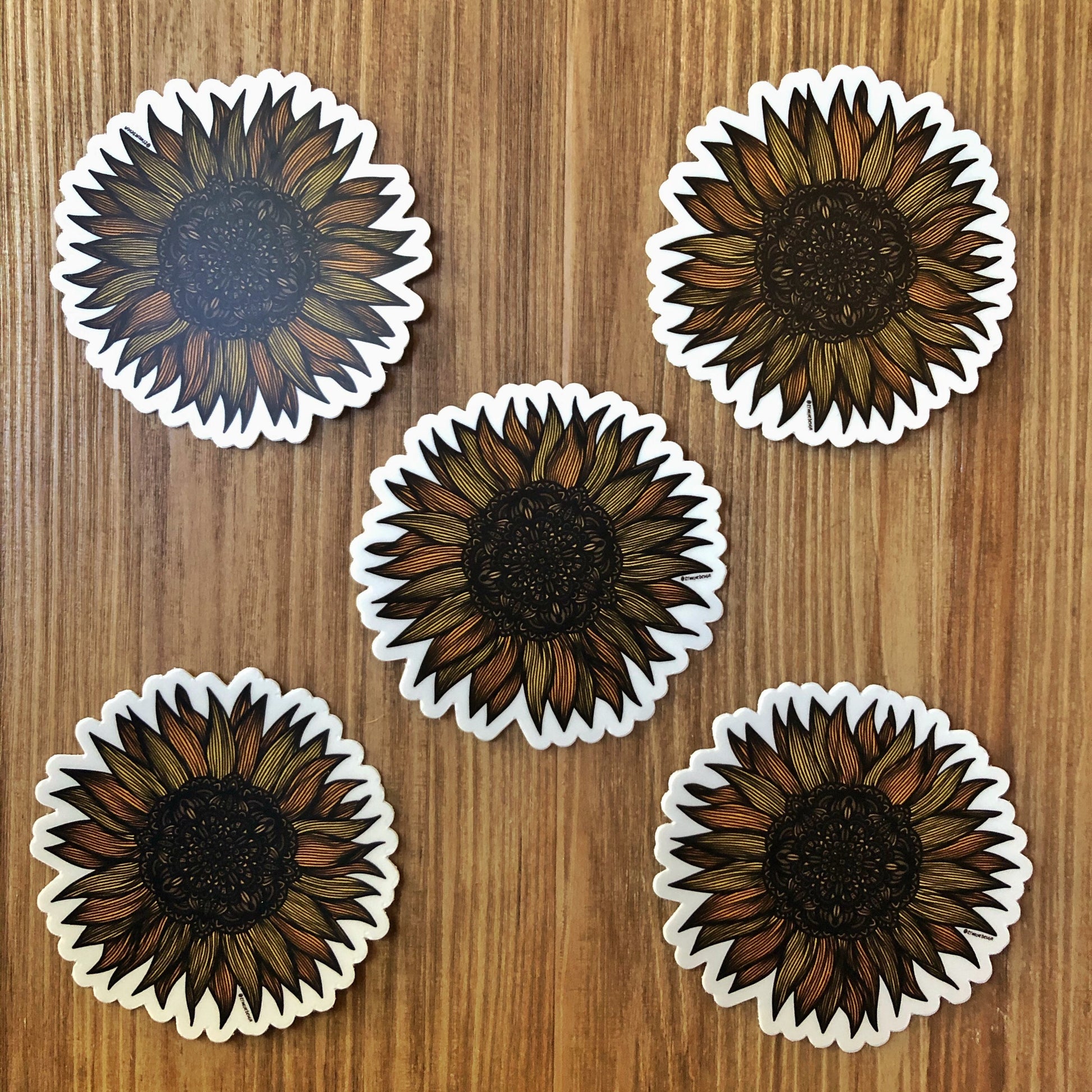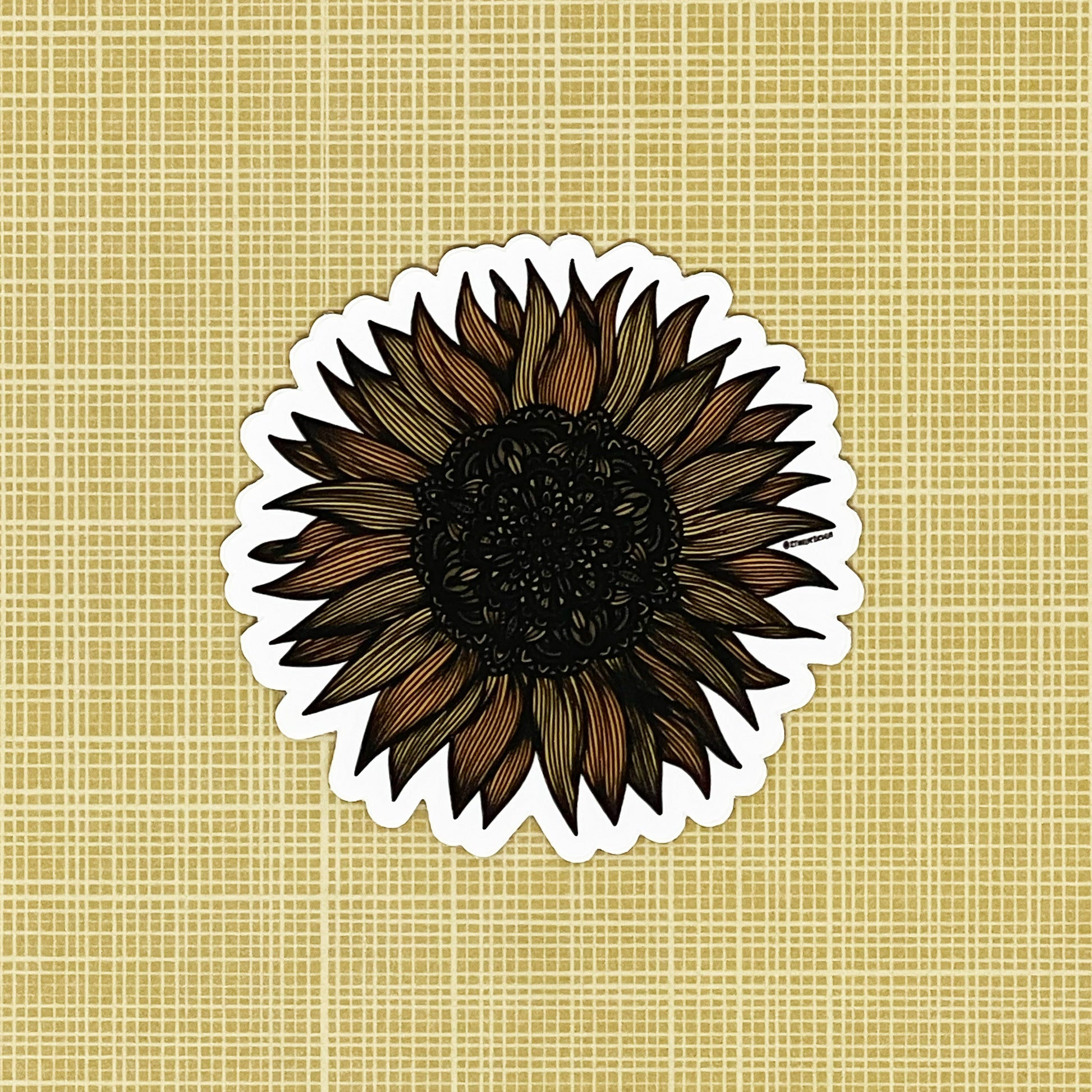 Hand-drawn sunflower illustration made into a vinyl, waterproof die-cut matte sticker. Decorate your water bottle, laptop, bulletin board, planner, and more!
