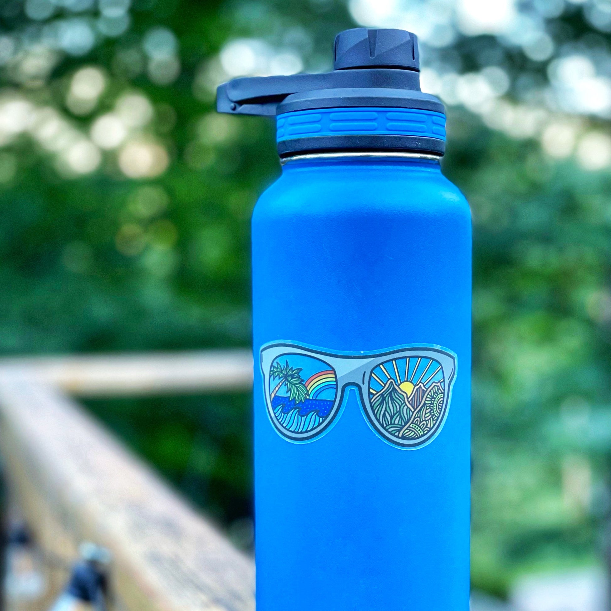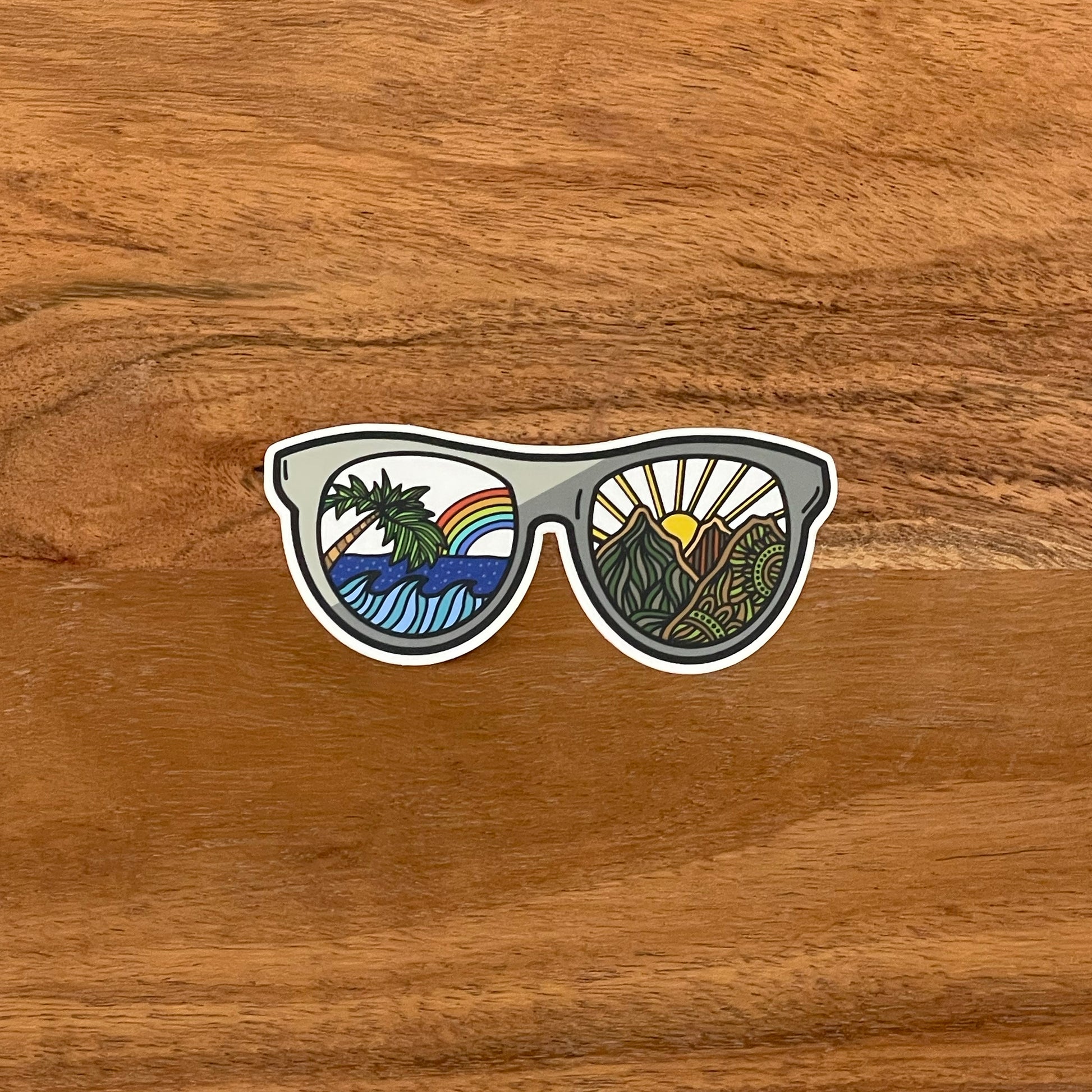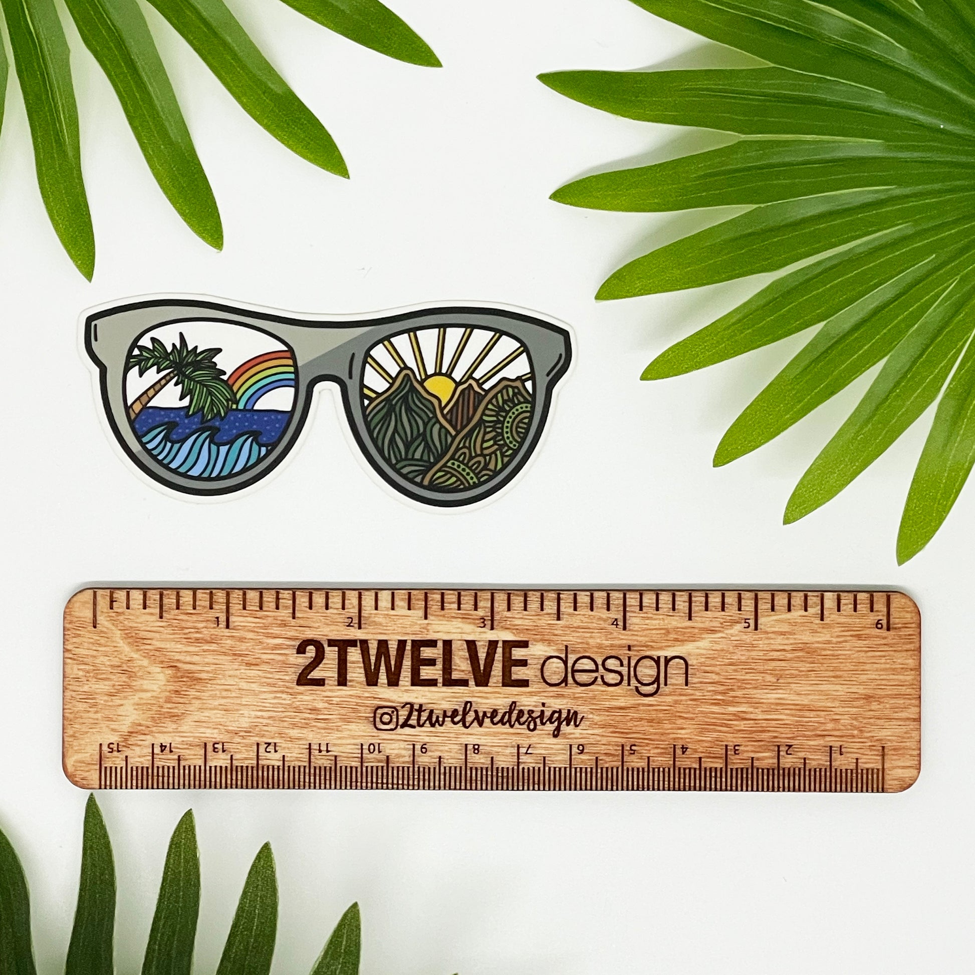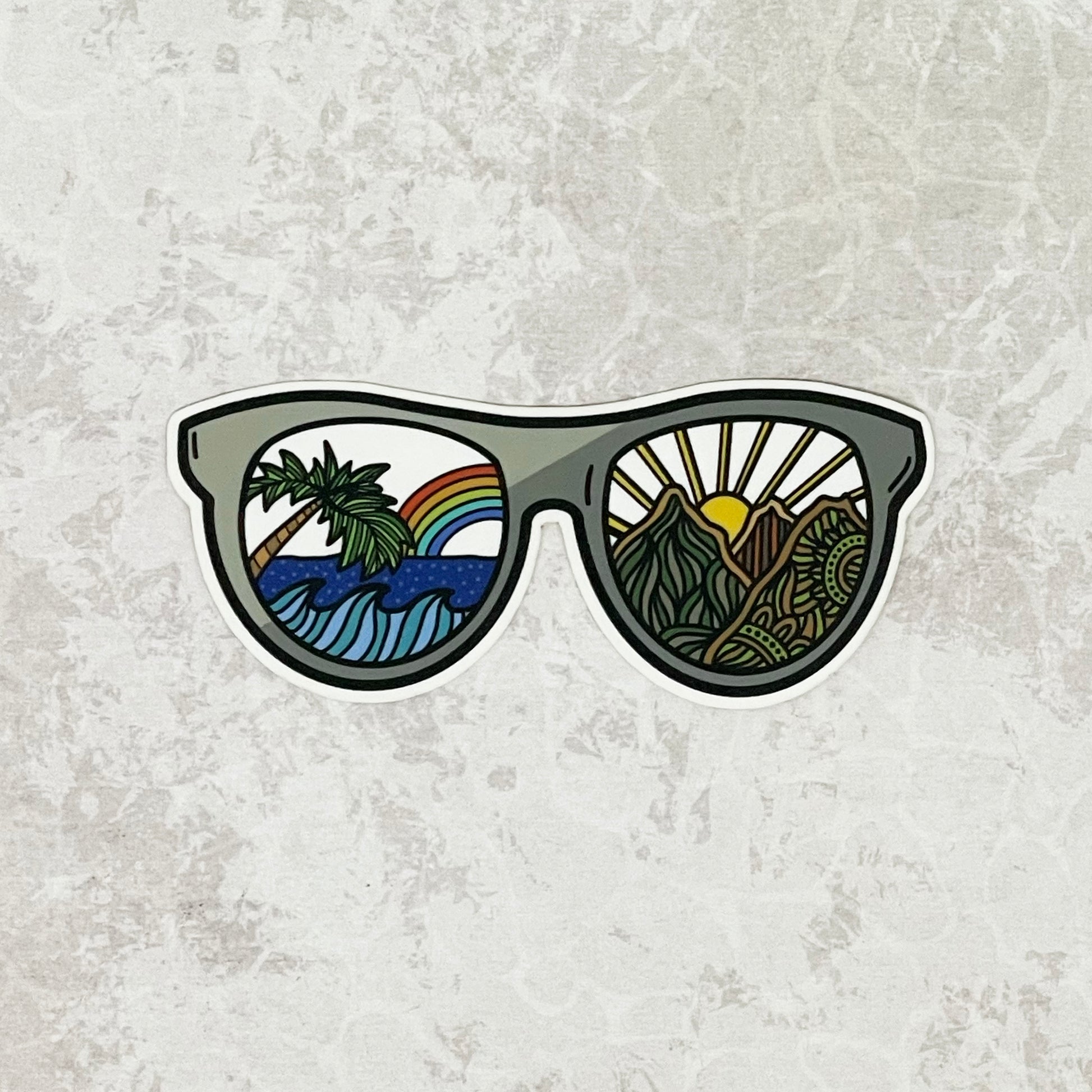 Hand-drawn sunglasses illustration made into a vinyl, waterproof die-cut clear sticker. The sky is clear, whatever you put this sticker on will be the color of the sky! Decorate your water bottle, laptop, bulletin board, planner, and more!